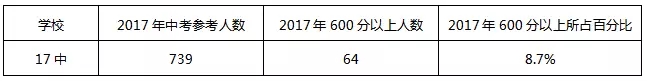 17中南区是一个初、高中都有的综合学校。而且在17南的高中都是重点班的,高中是住宿的!为什么很多人想去17中南,因为初中跟高中在一起,就会有很多微妙的关系,比如:在初三的时候,老师会跟班里的前几名说报考本学校的高中会有相关的优惠政策,而且17的高中重点班很不错。