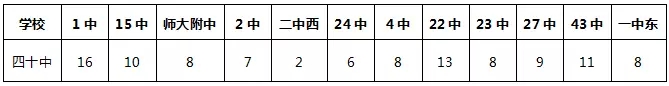 40中本校共12个班,其中1-9班是本部(片内)班级,10-12班是求实班级。1-9班中,3班和6班为重点班,2班和7班为次重点班。每班人数55人左右。